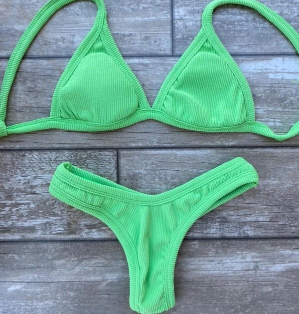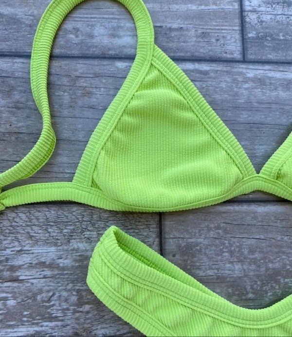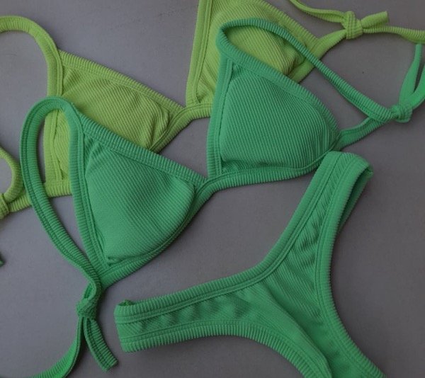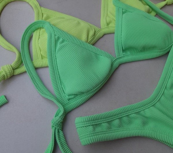 Corpiño triángulo para atar en cuello y espalda — lo ajustás a tu gusto. Less en V que estiliza, con bordes suaves y buen apoyo.